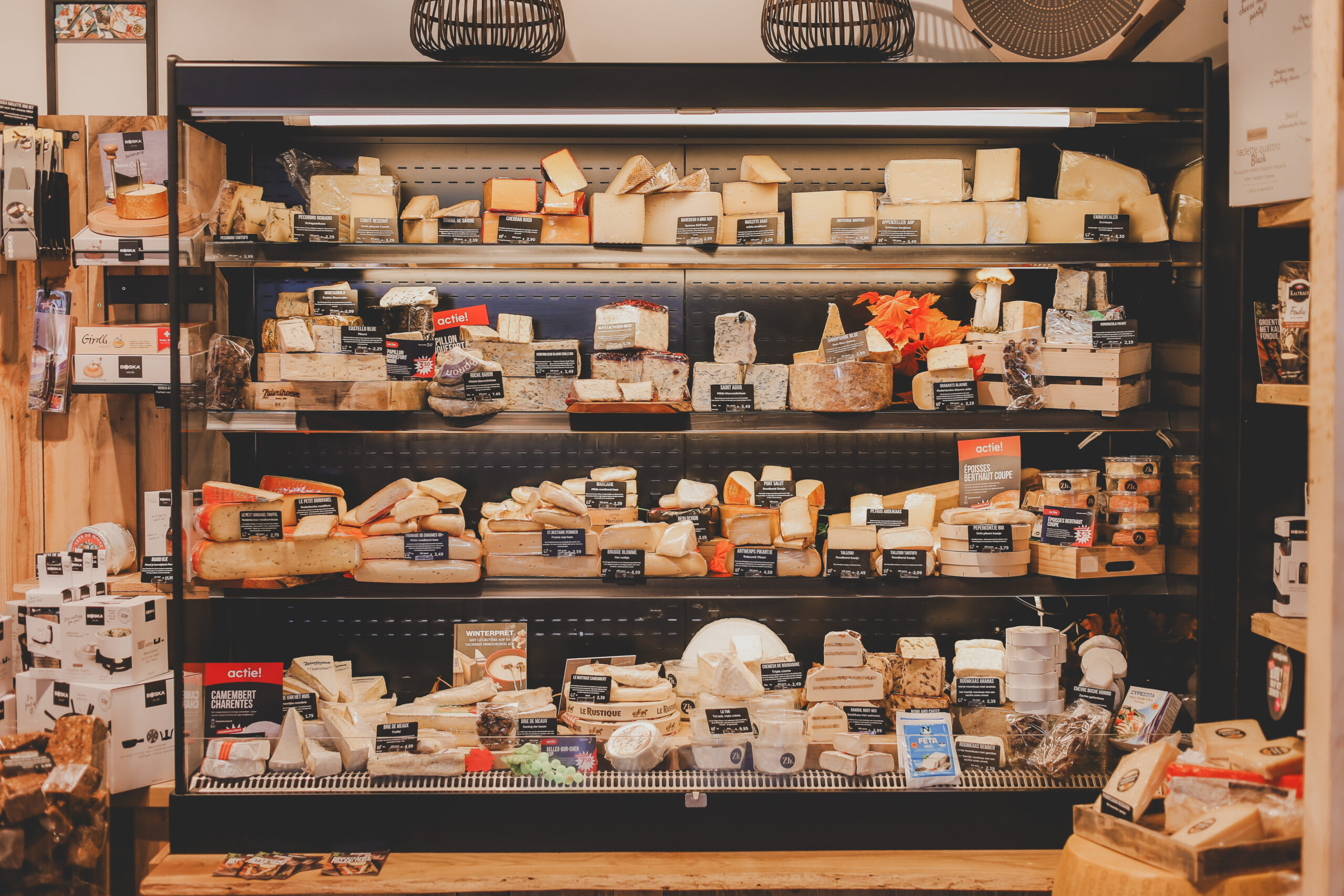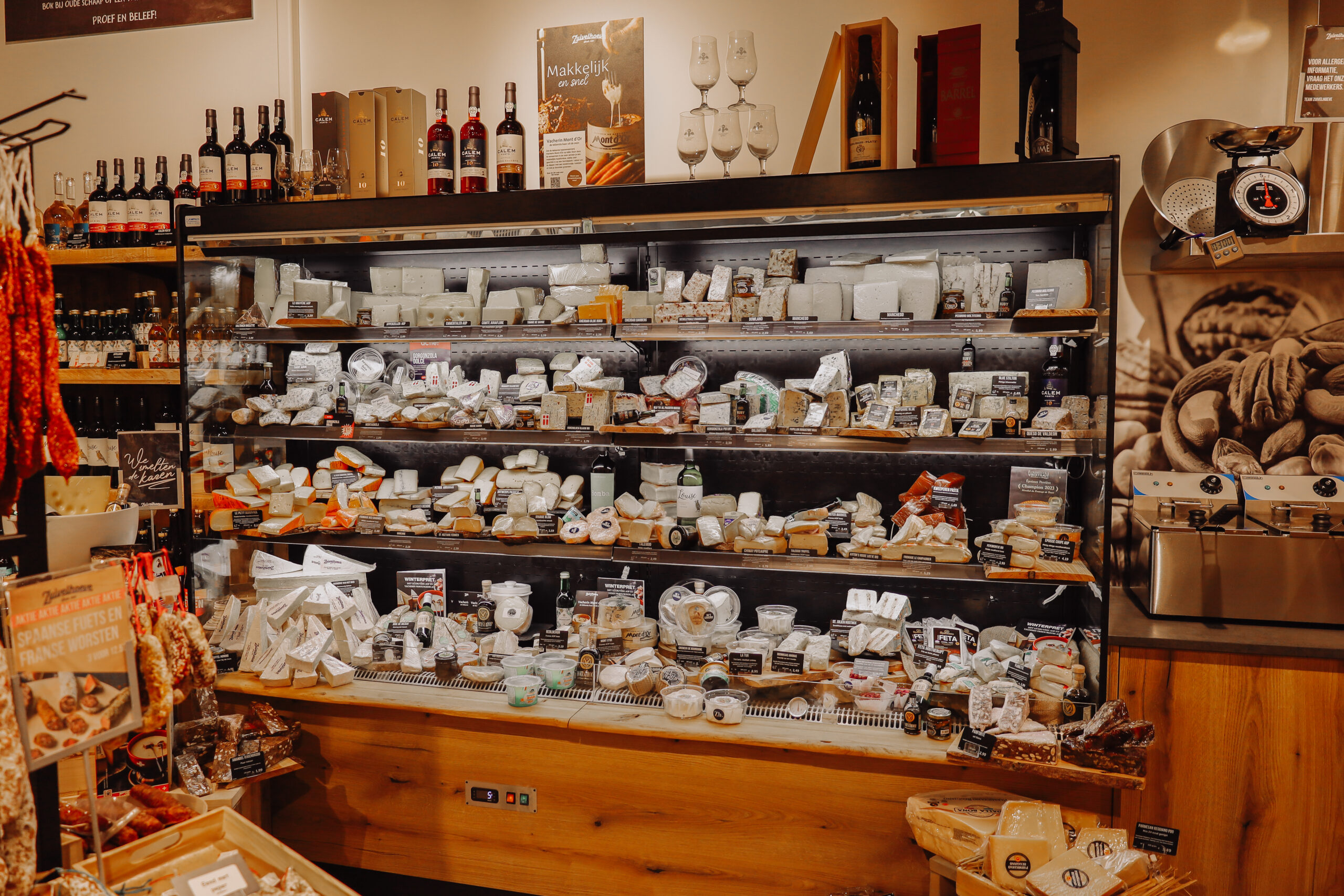 Naast een breed assortiment Hollandse kazen, kunt u in de prachtige winkel van het enthousiaste ondernemersstel Remco en Linda ook terecht voor de mooiste buitenlandse kazen, vers gebrande noten, worsten, de lekkerste tapas, zuidvruchten en allerlei andere lekkernijen.
