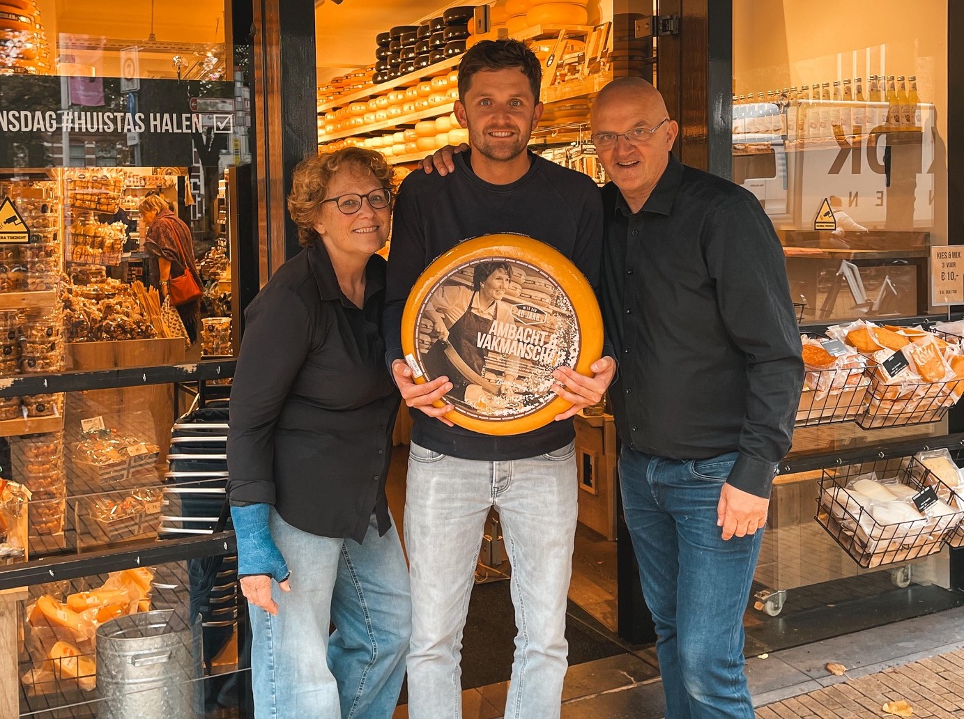 Begin 2023 kregen ze de kans hun winkel te verkopen. Het was tijd voor iets nieuws. Zoon Bart ging een wereldreis maken, Anton en Willie trokken maandenlang met hun caravan door Europa. Maar al snel ontdekten ze alle drie dat ze maar één droom hadden: een nieuw winkeltje. In Groningen. Ze kwamen erachter dat er een pandje te huur stond aan het Akerkhof, naast boekhandel Van der Velde, en ze gingen overleggen met Diane, de directeur van de Zuivelhoeve. Die was enthousiast, en moedigde hen aan om het avontuur aan te gaan. Inmiddels bestaat de winkel aan het Akerkhof al bijna twee jaar en wordt het elke week drukker. Mensen komen voor de kaas, de vers gebrande noten, chocola, speciaalbiertjes en wijnen, de koelvitrine voor zuivel, de buitenlandse kazen, cadeautjes. Langs de wanden liggen kazen opgestapeld tot aan het plafond.